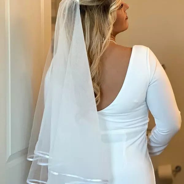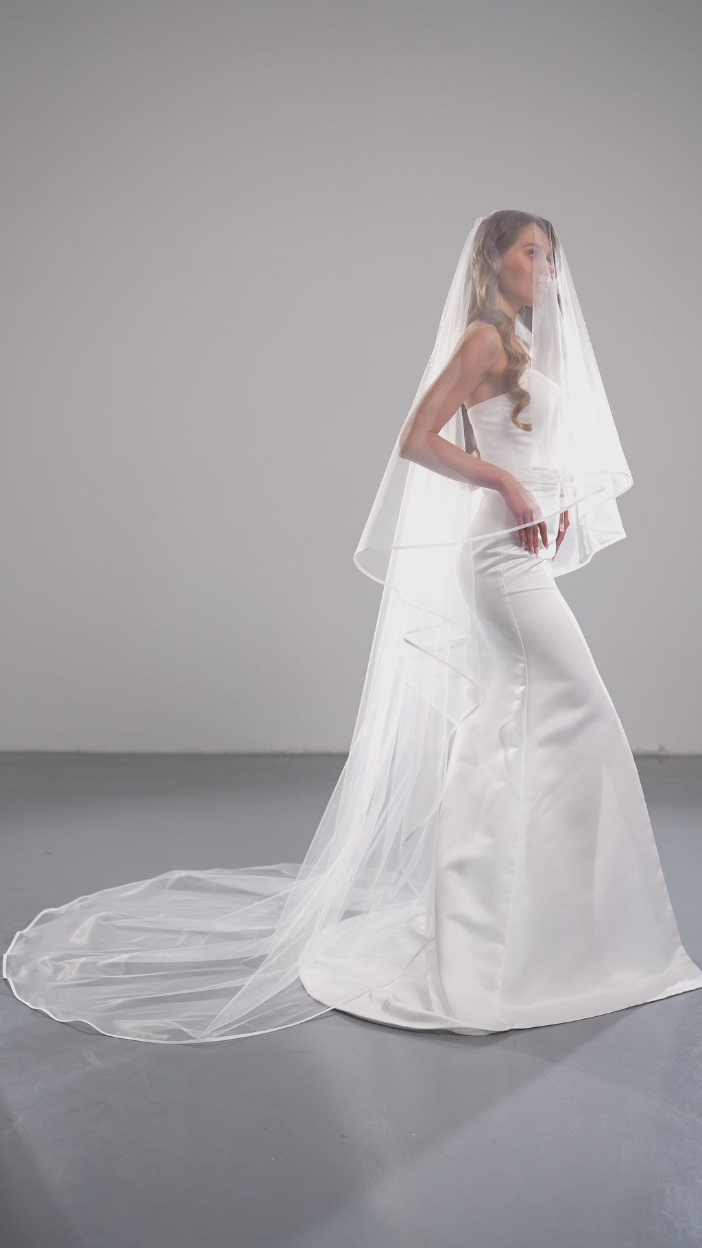 Satin trim wedding veil with blusher – elegant two-tier bridal veil